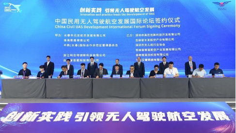 在論壇開幕式上,與會(huì)領(lǐng)導(dǎo)與嘉賓向無人駕駛航空第二批試驗(yàn)區(qū)授牌,為吉林省無人機(jī)產(chǎn)業(yè)協(xié)會(huì)揭牌,并共同證簽了長(zhǎng)春市航空產(chǎn)業(yè)園項(xiàng)目。