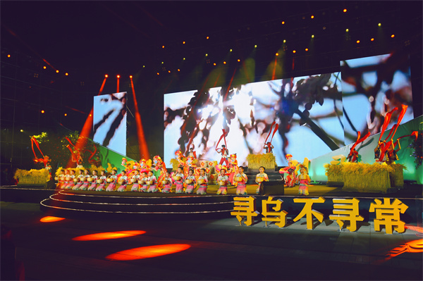 尋烏還是具有光榮革命傳統(tǒng)的紅色故土、革命老區(qū)。節(jié)目現(xiàn)場(chǎng),情景演繹《大美尋烏》以祖孫對(duì)話、導(dǎo)游講解、視頻展示等形式,帶觀眾身臨其境地體驗(yàn)了壯美秀麗的東江源、古色古香的大夫第和彰顯紅色精神的“一館七址”。具有光榮革命傳統(tǒng)的尋烏人民,銘記歷史,感恩奮進(jìn),凝聚智慧,勇于擔(dān)當(dāng),砥礪前行,奮力譜寫尋烏高質(zhì)量發(fā)展新篇章,描繪了一幅尋烏社會(huì)主義現(xiàn)代化建設(shè)新畫卷!歡歌笑語唱盛世,一首《尋烏不尋?!犯浅鰧跞嗣袂趧趭^進(jìn)、追尋美好生活的幸福愿景!