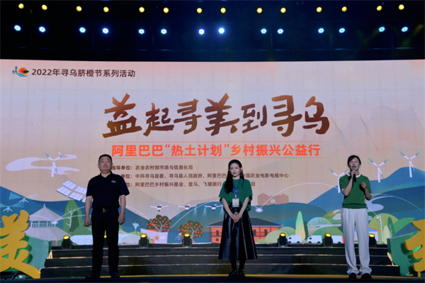 客家韻、紅土風(fēng)、東江源、橘鄉(xiāng)情,尋烏不尋常!11月21日晚,2022年尋烏臍橙節(jié)系列活動(dòng)之阿里巴巴“熱土計(jì)劃”鄉(xiāng)村振興公益行—益起尋美到尋烏系列活動(dòng),在江西省尋烏縣客家小鎮(zhèn)音樂噴泉廣場(chǎng)盛大舉行。本次活動(dòng)由農(nóng)業(yè)農(nóng)村部市場(chǎng)與信息化司指導(dǎo),中共尋烏縣委、尋烏縣人民政府、阿里巴巴公益、中國農(nóng)業(yè)電影電視中心主辦;阿里巴巴鄉(xiāng)村振興基金、盒馬、飛豬旅行、《鄉(xiāng)約》欄目共同承辦。