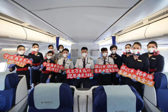 飛機(jī)起飛后,機(jī)長(zhǎng)通過客艙廣播系統(tǒng)向代表團(tuán)表達(dá)美好祝愿:“今天的航程注定意義非凡,復(fù)工達(dá)產(chǎn)、促進(jìn)外貿(mào)的共同目標(biāo),讓我們相聚在萬米高空,共同的使命,讓我們對(duì)前程充滿期待。本次航班是寧波首趟也是全國首創(chuàng)的涉外商務(wù)人員包機(jī),你們傳承著新時(shí)代浙商精神,創(chuàng)業(yè)創(chuàng)新闖天下,合心合力強(qiáng)浙江,展現(xiàn)著中國企業(yè)迎難而上的信心與勇氣。非常高興與你們同行,你們出國抓訂單、拓市場(chǎng),東航助你們?nèi)蝻w、飛全球,一路相伴、共創(chuàng)精彩。衷心祝愿大家在歐洲工作順利,帶著訂單滿載而歸,祝愿中國企業(yè)服務(wù)祖國、走向世界的航程更廣闊!”
