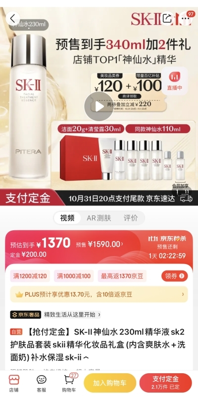 享譽全球的SK-II鎮(zhèn)店王牌神仙水,是每個精致女孩化妝臺上的必備好物。其蘊含超過90%的天然生物成分PITERA?,從根源強(qiáng)韌修護(hù),顯著減少秋冬肌膚干燥泛紅,抑制老化因子,讓肌膚更加細(xì)膩緊致、晶瑩剔透。京東11.11期間,原價1590元的SK-II神仙水230ml裝到手價1370元,同時加贈神仙水110ml、潔面20g、清瑩露30ml,為消費者打造全流程的精致護(hù)膚體驗。