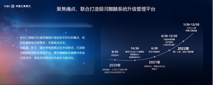 本次新品發(fā)布環(huán)節(jié)中,由工商銀行和麒麟軟件聯(lián)手推出的“銀河麒麟系統(tǒng)升級管理平臺”引起廣泛關注。該平臺是首款國產(chǎn)服務器操作系統(tǒng)集約化管理平臺創(chuàng)新產(chǎn)品?;谛袠I(yè)痛點深度打磨,擁有自動化漏洞發(fā)現(xiàn)與補丁安裝、精細化系統(tǒng)配置管控兩大核心功能,現(xiàn)已納管超10000套銀河麒麟服務器操作系統(tǒng)環(huán)境且穩(wěn)定運行,成為業(yè)內標桿。