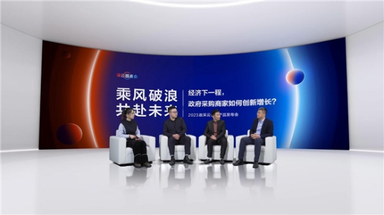 在政采云產(chǎn)品發(fā)布會(huì)“采云圓桌會(huì)”上,來自聯(lián)想集團(tuán)中國(guó)區(qū)商用大客戶政采電商業(yè)務(wù)負(fù)責(zé)人宿博、浙江時(shí)代新銳科技有限公司董事長(zhǎng)兼總經(jīng)理王翔、杭州商廬貿(mào)易有限公司總經(jīng)理歐邦海、政采云有限公司商家業(yè)務(wù)部總經(jīng)理王銳敏共同探討了“經(jīng)濟(jì)下一程,政府采購(gòu)商家如何創(chuàng)新增長(zhǎng)”的話題,各自分享了數(shù)字化轉(zhuǎn)型過程中的經(jīng)驗(yàn)。