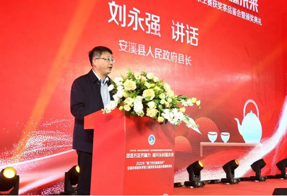 安溪縣縣長(zhǎng)劉永強(qiáng)在講話中表示,20多年來(lái),廈門市安溪商會(huì)團(tuán)結(jié)帶領(lǐng)在廈鄉(xiāng)親弘揚(yáng)愛(ài)拼敢贏、靠自己的骨頭長(zhǎng)肉的精神,拼搏商海,盡顯風(fēng)采,在廈門特區(qū)留下了耀眼的茶鄉(xiāng)印記。難能可貴的是商會(huì)多年來(lái)傾心傾力,支持推動(dòng)家鄉(xiāng)茶產(chǎn)業(yè)發(fā)展,舉辦“廈門市安溪商會(huì)杯”茶王賽已成為規(guī)格最高的安溪鐵觀音茶葉賽事之一,激勵(lì)廣大茶農(nóng)茶人傳承匠心、用心制茶,提升安溪鐵觀音的美譽(yù)度和影響力。安溪是世界名茶鐵觀音發(fā)源地,中國(guó)烏龍茶之鄉(xiāng),近年來(lái),安溪縣委縣政府緊扣三茶統(tǒng)籌,全面推進(jìn)茶產(chǎn)業(yè)高質(zhì)量發(fā)展。得益于茶產(chǎn)業(yè)的蓬勃發(fā)展,安溪走上了高質(zhì)量發(fā)展快車道,縣域綜合實(shí)力躍升至全國(guó)百?gòu)?qiáng)縣第53位,投資潛力第11位,已成為高新技術(shù)產(chǎn)業(yè)高地、宜居宜業(yè)的發(fā)展福地。今年,安溪縣委縣政府錨定GDP突破千億,緊扣6個(gè)工作抓手,奮力實(shí)施七大行動(dòng),加快全面建設(shè)具有茶鄉(xiāng)特色的現(xiàn)代化中等城市。真誠(chéng)期待廈門市安溪商會(huì)和廣大鄉(xiāng)賢以各種方式參與其中,同時(shí)竭誠(chéng)歡迎各界朋友到安溪品茗觀光、投資興業(yè)、共贏未來(lái)。