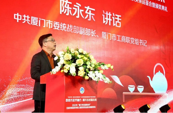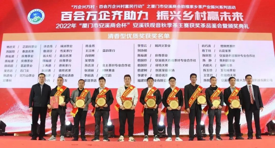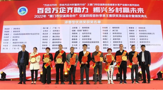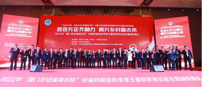 2月24日,由廈門市工商聯(lián)(總商會(huì))、安溪縣人民政府主辦,廈門市安溪商會(huì)承辦,中共安溪縣委統(tǒng)戰(zhàn)部、安溪縣茶業(yè)管理委員會(huì)辦公室、安溪縣工商聯(lián)協(xié)辦的2022年“廈門市安溪商會(huì)杯”安溪鐵觀音秋季茶王賽獲獎(jiǎng)茶品鑒會(huì)暨頒獎(jiǎng)典禮在廈門佰翔五通酒店盛大舉行。本次活動(dòng)是為了進(jìn)一步落實(shí)廈門市工商聯(lián)和安溪縣人民政府提出的“萬(wàn)企興萬(wàn)村·百會(huì)萬(wàn)企興村富民行動(dòng)”計(jì)劃——廈門市安溪商會(huì)助推家鄉(xiāng)茶產(chǎn)業(yè)振興活動(dòng),也是“廈門企業(yè)家日”配套活動(dòng)之一。