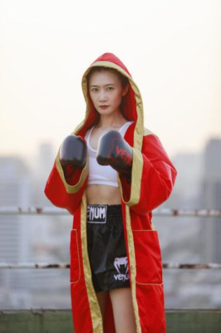 于是我在想如果是參加比賽的話,那么就有可能會遇到在全球范圍之內(nèi)能跟我有同樣量級的職業(yè)拳擊手。果不其然,這一次去泰國比賽就遇到了Siritorn,她也是108磅量級的職業(yè)拳擊手,從小訓(xùn)練泰拳,所以經(jīng)由這我就開啟了自己的職業(yè)比賽之路。我覺得拳擊比賽對我來講就是一次拳擊的集中檢驗,7年訓(xùn)練的結(jié)果,將在這一次的比賽當(dāng)中完成一次考試。