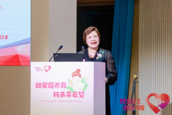 ▲國家衛(wèi)生健康委婦幼健康司副司長沈海屏做《兒童早期發(fā)展與嬰幼兒養(yǎng)育照護(hù)》主旨報(bào)告