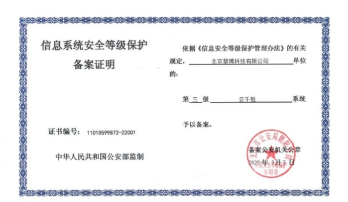 而作為全域消費(fèi)者數(shù)字化運(yùn)營服務(wù)商,我們有責(zé)任確??蛻粲脩舻碾[私得到充分的尊重和保護(hù)?;鄄┛萍荚魄лd是行業(yè)中同時(shí)獲得ISO27001(信息安全管理體系認(rèn)證證書)與「三級(jí)等保」雙重認(rèn)證的企業(yè)產(chǎn)品,充分體現(xiàn)出慧博科技云千載數(shù)據(jù)中臺(tái)系統(tǒng)在用戶信息安全管理方面擁有領(lǐng)先的信息技術(shù)水平和安全防護(hù)能力。