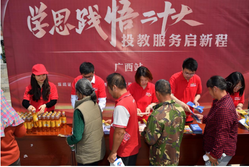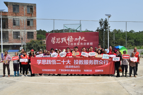 4月25日-26日,深交所聯(lián)合海通證券、廣西證券期貨基金業(yè)協(xié)會(huì)、證券時(shí)報(bào)舉辦的“學(xué)思踐悟二十大 投教服務(wù)啟新程”投資者服務(wù)專項(xiàng)活動(dòng)走進(jìn)廣西欽州市浦北縣。在深入開(kāi)展學(xué)習(xí)新時(shí)代中國(guó)特色社會(huì)主義思想主題教育之際,以多載體、多角度、多形式走進(jìn)鄉(xiāng)村小學(xué)、村間打谷場(chǎng)、田間地頭、紅色教育基地,以群眾喜聞樂(lè)見(jiàn)的方式展開(kāi)面對(duì)面宣傳交流,推動(dòng)投資者教育服務(wù)進(jìn)一步走進(jìn)鄉(xiāng)村基層,助力鄉(xiāng)村振興。