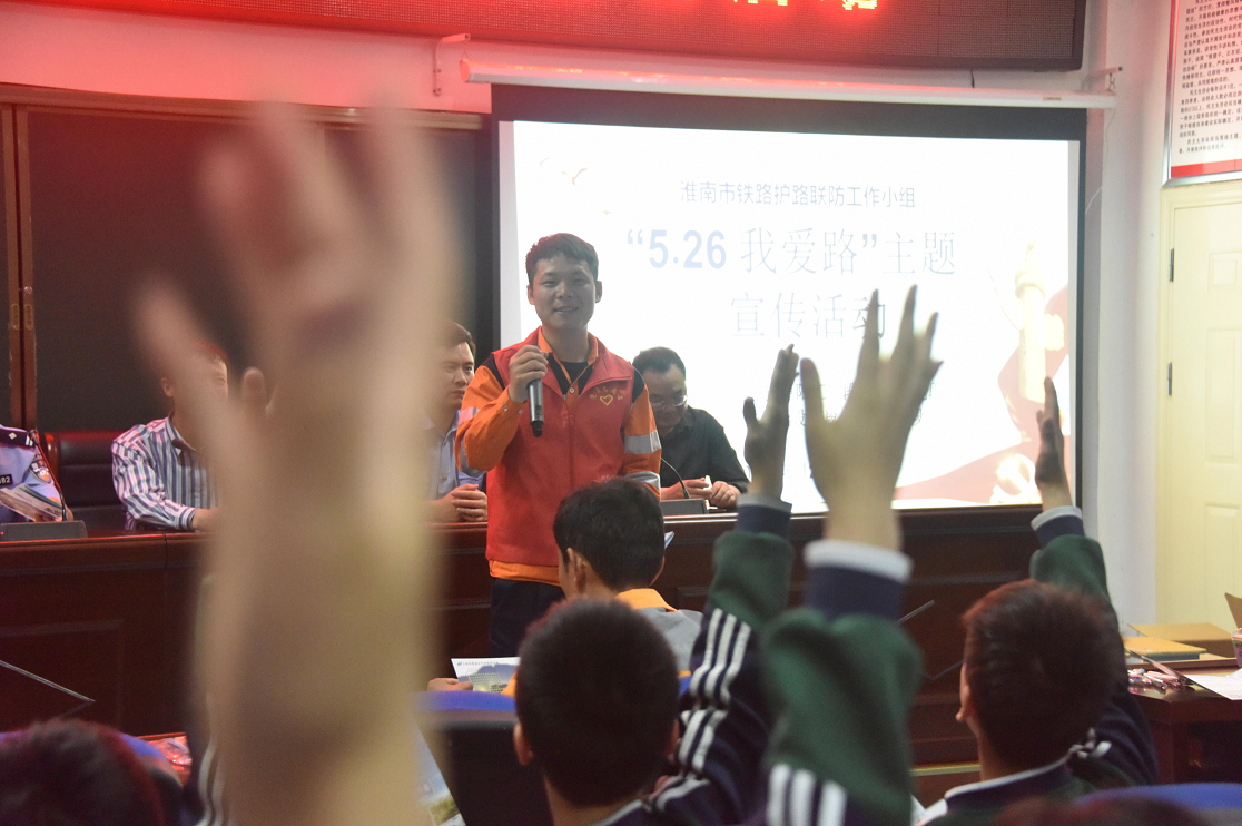 在鳳臺(tái)五中的主題宣講活動(dòng)中,通過(guò)發(fā)放宣傳資料、有獎(jiǎng)競(jìng)答等方式,多方位、全方面宣講鐵路安全知識(shí),激發(fā)學(xué)生們的參與熱情,保證宣講入腦入心。