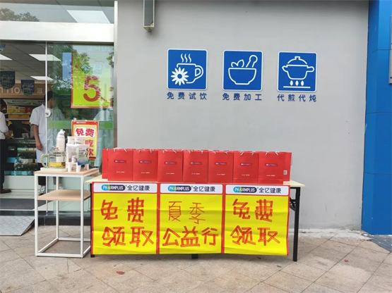 為應(yīng)對(duì)高溫天氣,淮安廣濟(jì)醫(yī)藥連鎖10家藥店,設(shè)置了“愛心冰箱”,給戶外勞動(dòng)者提供免費(fèi)飲用水和藿香正氣液等解暑物資。
