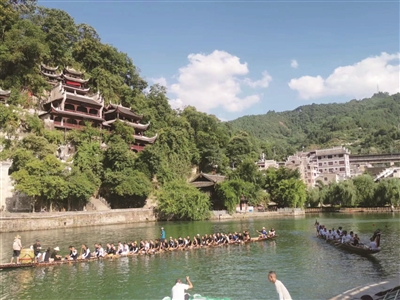 舞陽(yáng)河,青龍洞,綠水青山看鎮(zhèn)遠(yuǎn)。依托古城國(guó)家5A級(jí)旅游景區(qū)等10張國(guó)家級(jí)文化旅游“名片”,鎮(zhèn)遠(yuǎn)縣近年來(lái)創(chuàng)新體制機(jī)制,聚焦宜居、宜業(yè)、宜游三個(gè)核心功能,持續(xù)開(kāi)發(fā)境內(nèi)文化資源,豐富旅游業(yè)態(tài),在推進(jìn)“文化名城”“旅游名城”建設(shè)的同時(shí),縣域經(jīng)濟(jì)不斷增長(zhǎng),與之相關(guān)的文旅企業(yè)借勢(shì)增長(zhǎng),截至目前,涉旅文化旅游經(jīng)營(yíng)單位1600余家,旅游綜合收入89.38億元。