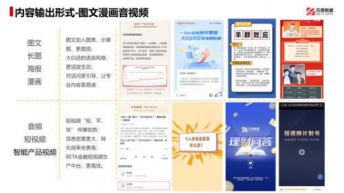 為此,貝塔數(shù)據(jù)團(tuán)隊搭建了“BETA內(nèi)容工廠”,并與內(nèi)外部合作伙伴合作,以確保金融機(jī)構(gòu)能夠獲得豐富的內(nèi)容資源。此外,他們還設(shè)計了12道工序進(jìn)行內(nèi)容清洗和分類,以確保內(nèi)容的合規(guī)性和質(zhì)量。數(shù)千個內(nèi)容標(biāo)簽和圖譜式的內(nèi)容管理可讓內(nèi)容互相關(guān)聯(lián),并基于算法+中臺的方法來提高內(nèi)容產(chǎn)出效率。最后,采用千人千面的方式進(jìn)行產(chǎn)出,以進(jìn)一步滿足投教的個性化需求。這些方法可以有效地保證金融機(jī)構(gòu)提供高質(zhì)量、大量的投教內(nèi)容。
