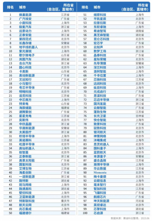 表1 賽迪科創(chuàng)獨(dú)角獸百?gòu)?qiáng)(2023)