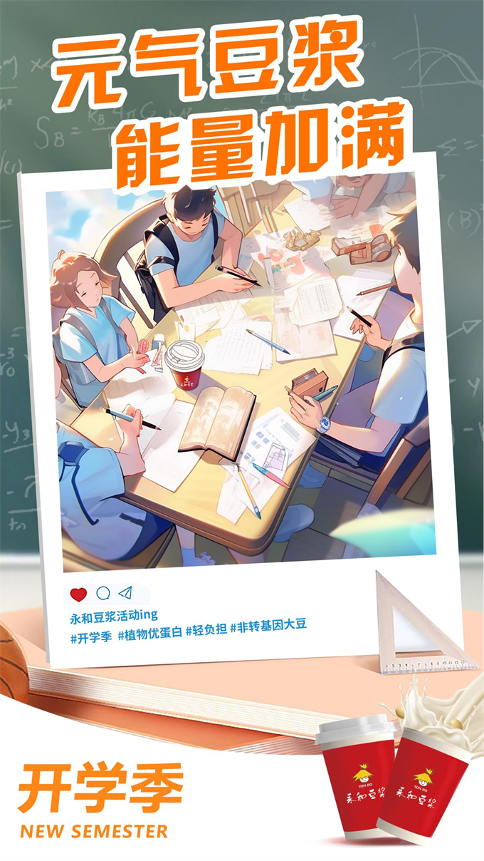 打造開學(xué)好狀態(tài),從永和豆?jié){開始。多元營養(yǎng)國際品質(zhì),讓家長更放心。新學(xué)期一起活力滿滿向前沖!